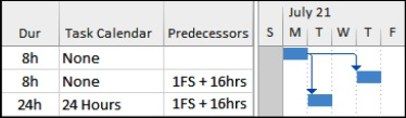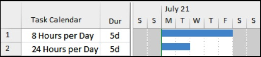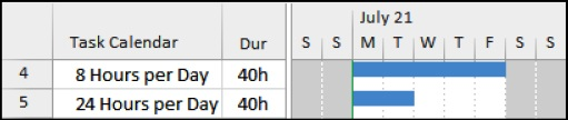 ❖ When Resources and a Task Calendar are assigned and the Scheduling ignores resource calendars is checked, the Task Calendar is used.